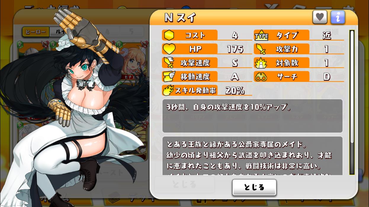 LvコストタイプHP攻撃力攻撃速度対象数移動速度サーチスキル発動率スキルヒーローへの攻撃力攻撃速度(秒)