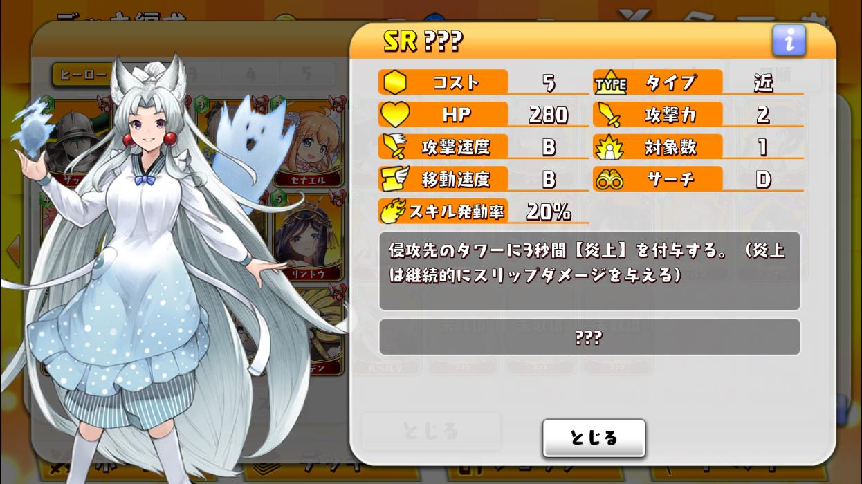 LvコストタイプHP攻撃力攻撃速度対象数移動速度サーチスキル発動率スキルヒーローへの攻撃力攻撃速度(秒)